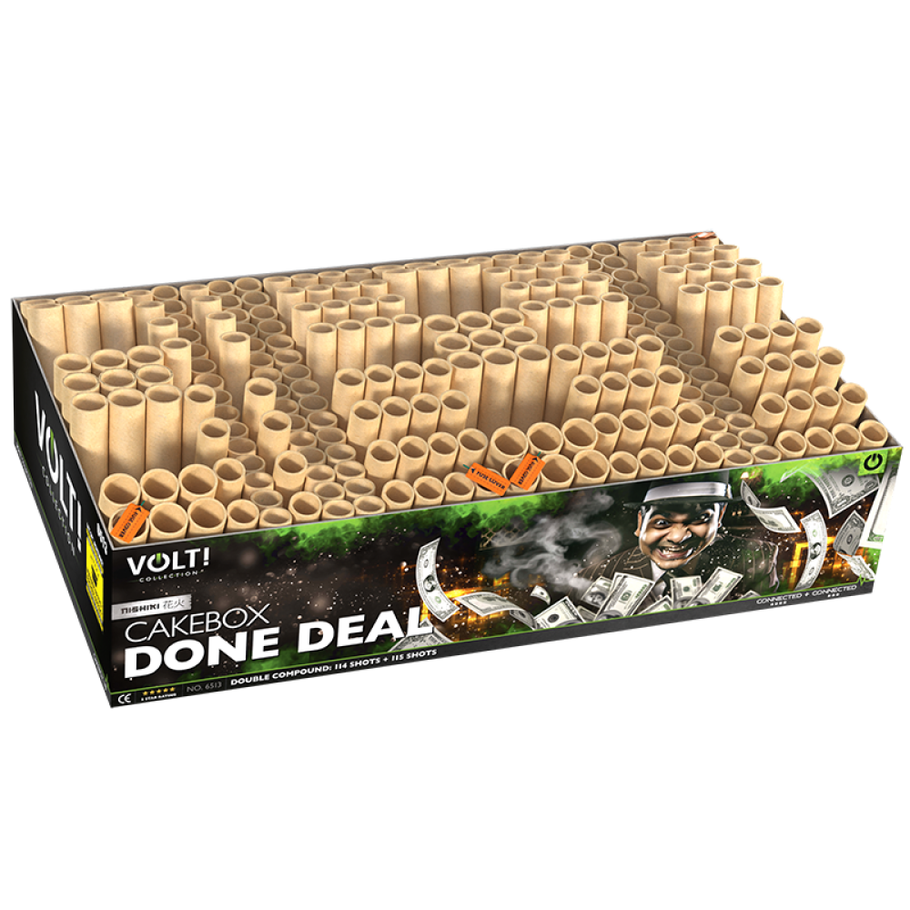 Bijna 2 minuten lang een complete vuurwerkshow in je wijk. Je bent de koning van de straat met deze dubbel compound van VOLT! Zowel I-shape als fanshape. In salvo's en enkel geschoten in een prachtige opbouw naar het zinderende slotstuk. 229 schots straatbak!