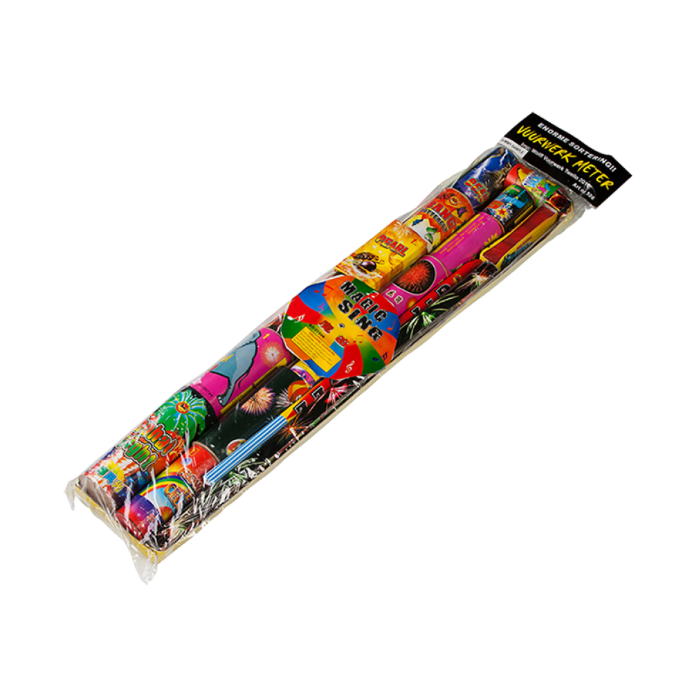 Het Metersierpakket is nou typisch zo'n product dat iedereen wel kent. Het is echt zo'n pakket waar u samen met uw kinderen van kunt genieten. Zo bevat het meerdere fonteinen en verschillende kleinere potten. Heerlijk grond- en siervuurwerk. Happy Crackers staat bekend om zijn vuurwerk voor het hele gezin LET OP: Vuurpijlen en knalvuurwerk zijn dit jaar verboden en zitten niet in dit pakket. U krijgt een extra artikel bij uw bestelling ter compensatie.