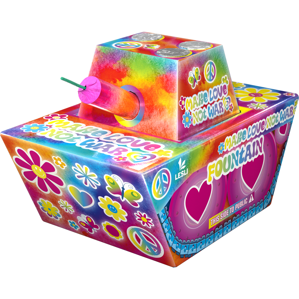 Deze spektakelfontein combineert rode, blauwe en groene sterren met gouden regen en felle fluiters!