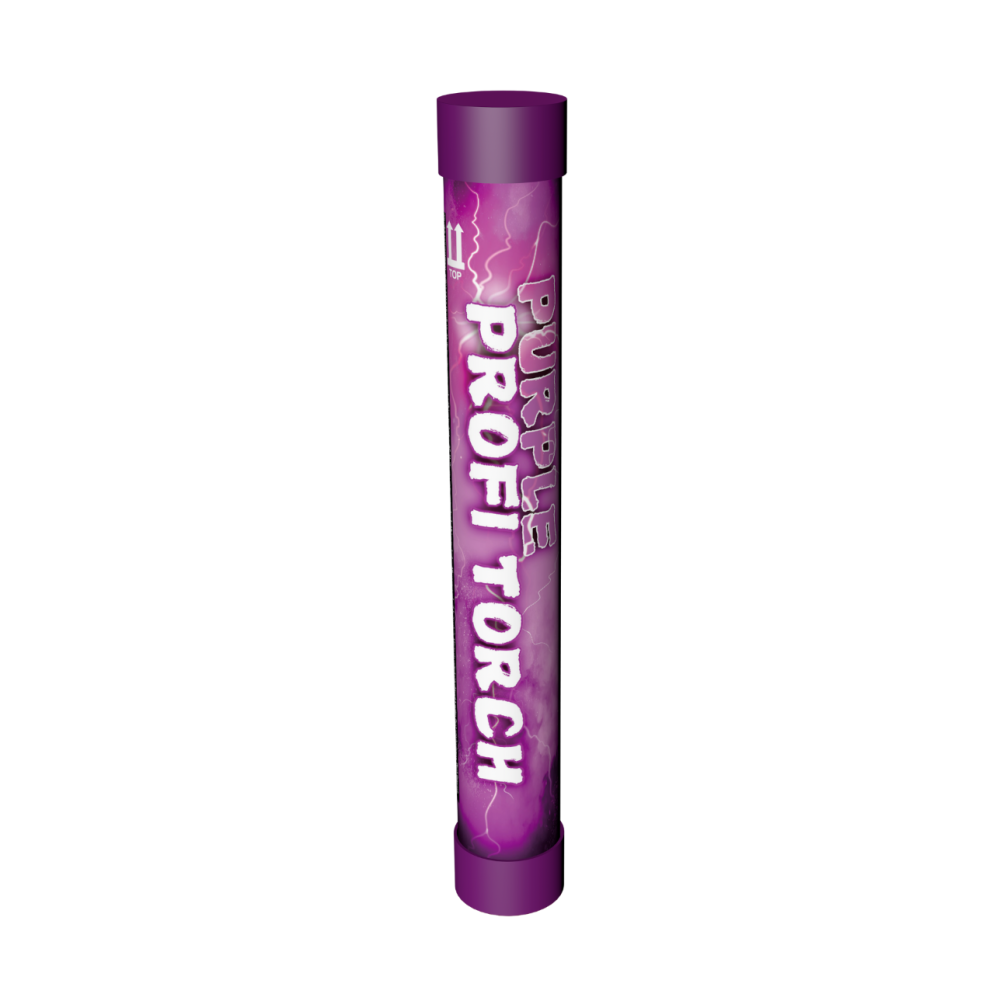 Felle paarse fakkel die de hele straat fel verlicht en vol rook zet!