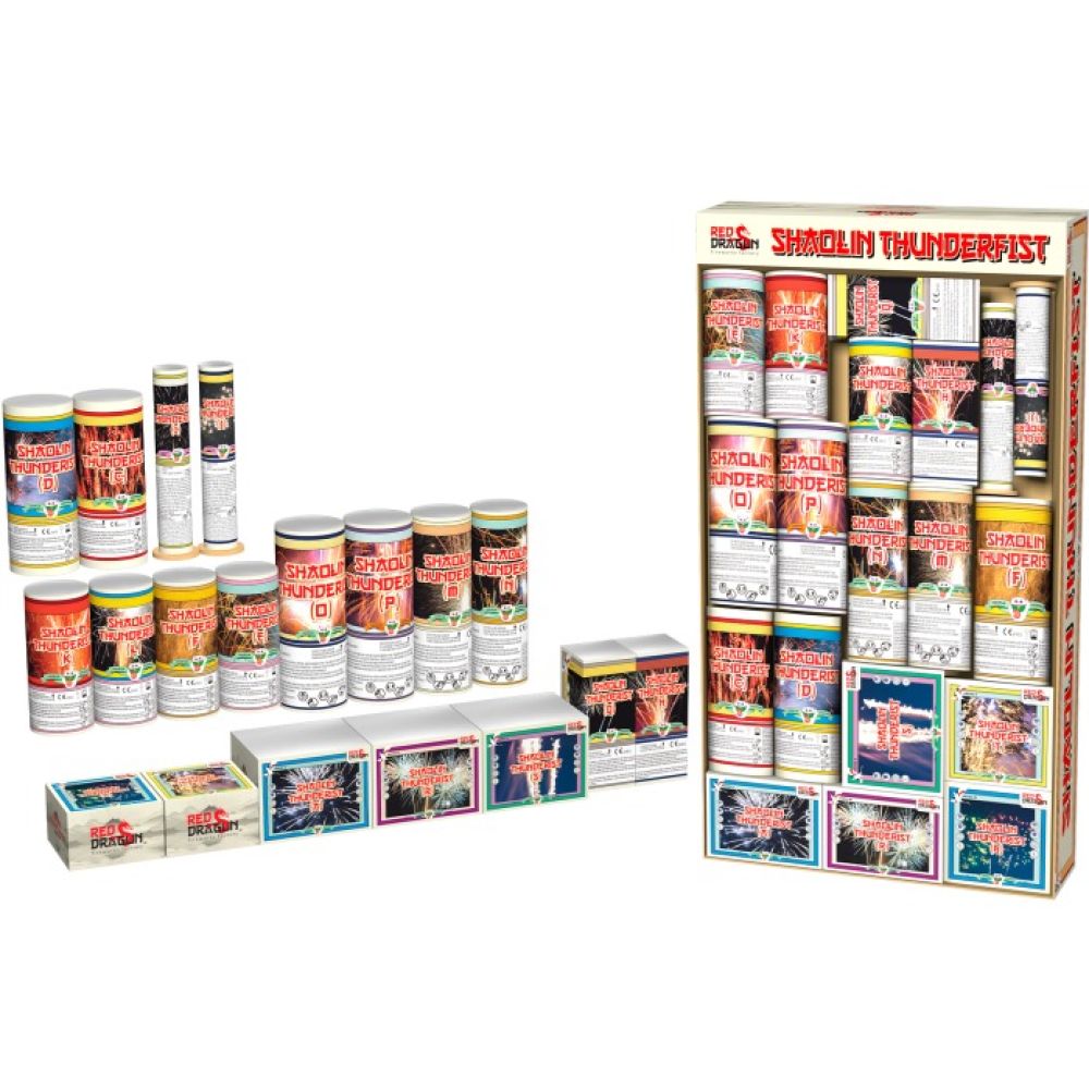 Het ultieme oosterse vuurwerkpakket. De grootste in de serie. Shaolin Thunderfist brengt een explosieve mix van 10 fonteinen, 2 vierkante fonteinen, 5 cakes en 2 mines. Alles draait om balans, kracht en indrukwekkende showwaarde. Een pakket dat z’n naam eer aandoet.