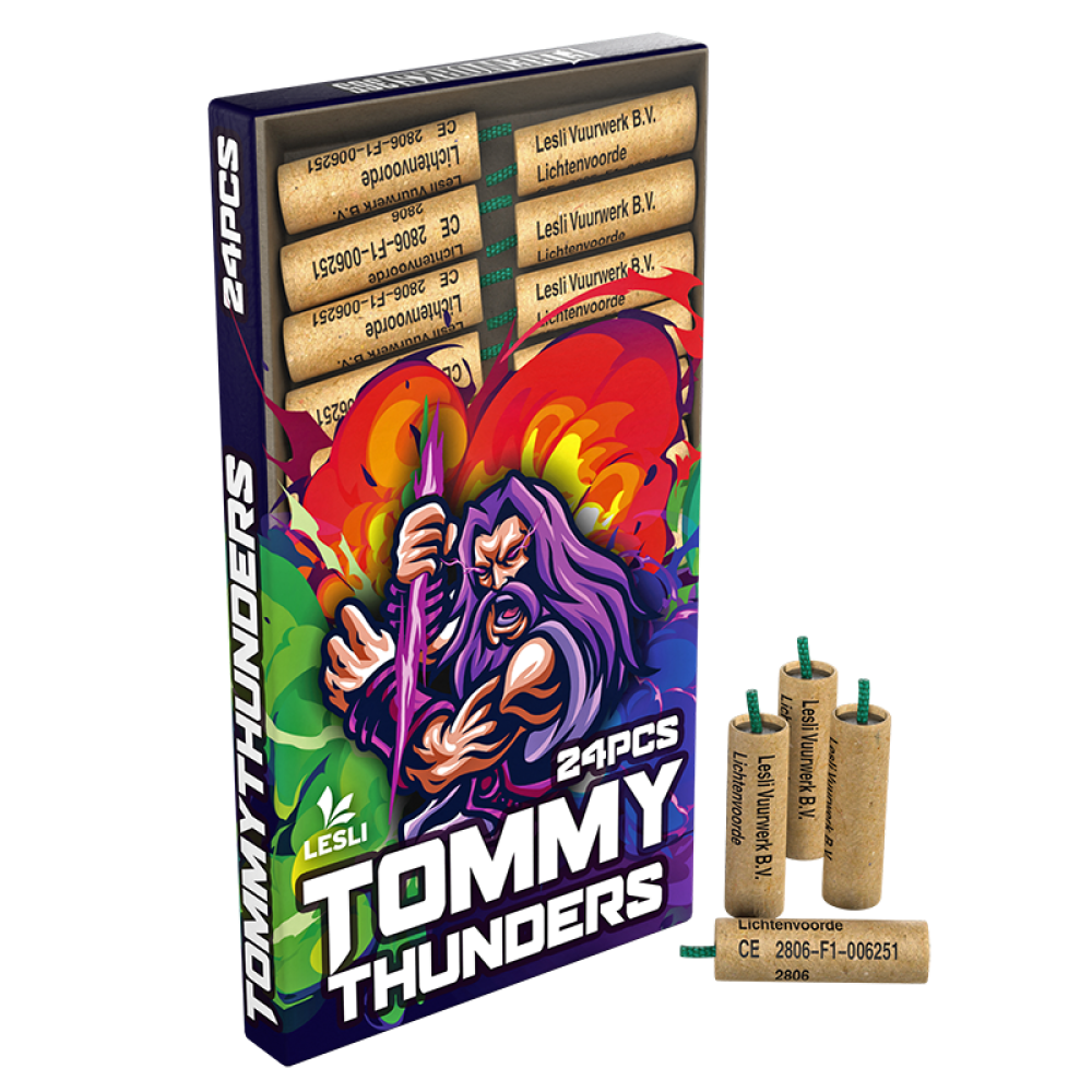 Rode, groene en blauwe vlammen barsten uit in een knetterend spektakel. 40 seconden plezier per stuk!
